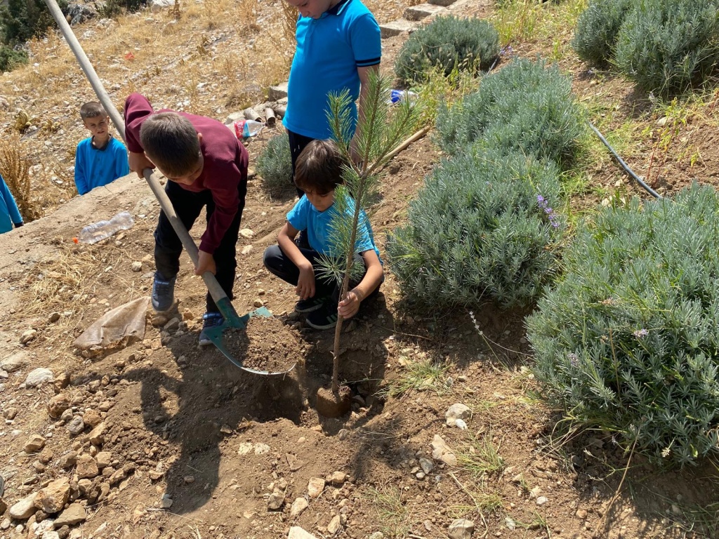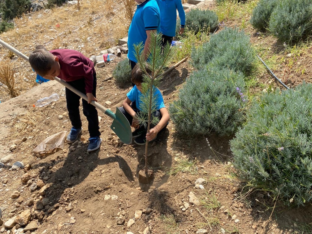 Etkinlikler çerçevesinde öğrenci ve öğretmenlerimizin desteği ile okulumuzda uygun yerlere ve dış kısmında 10 ağaç diktik.